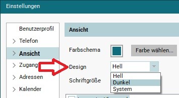 Dabei lässt sich auswählen, ob der Dark Mode generell gelten soll, oder ob sich die Darstellung an der gewählten Betriebssystem-Einstellung orientieren soll. Die zugehörige Option befindet sich direkt in den Tobit.Team-Einstellungen (erweiterte Ansicht) unter dem Punkt »Ansicht / Design«.