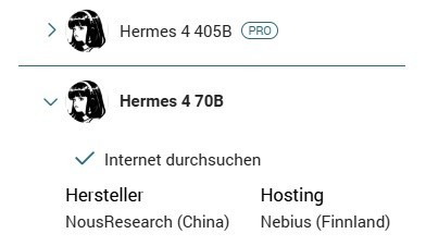 Hermes 4 ist ein Open-Source-KI-Modell von Nous Research, das intelligentes Denken mit voller Benutzer-Kontrolle kombiniert. Das Modell verbindet zwei Welten: Es kann schnell antworten wie ein Standard-KI-System oder „laut denken" für komplexe mathematische und logische Probleme. Diese Flexibilität macht es zu einer Hybrid-Lösung, die sich optimal an individuelle Anforderungen anpassen lässt.
