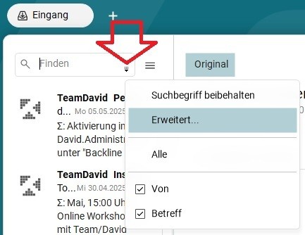 Mit vielfältigen Suchmöglichkeiten macht TeamDavid das Auffinden bestimmter Nachrichten, Daten oder Einträge besonders effektiv. Ein gutes Beispiel dafür ist der »Erweiterte QuickFinder«, der sich über den normalen QuickFinder oberhalb der Eintragsliste im TeamDavid Client nutzen lässt. Dazu genügt ein Klick auf den Schalter am Ende des QuickFinder-Eingabefeldes, der ein Menü mit dem Punkt »Erweitert« öffnet.